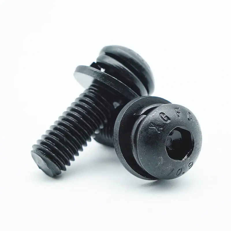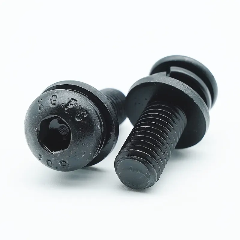वाशर के बिना शिकंजा की तुलना में, ब्लैक ऑक्साइड हेक्स सॉकेट बटन हेड कॉम्बिनेशन स्क्रू में लागत नियंत्रण और विधानसभा समय बचत में महत्वपूर्ण फायदे हैं, जिसमें निम्नलिखित भी शामिल है: